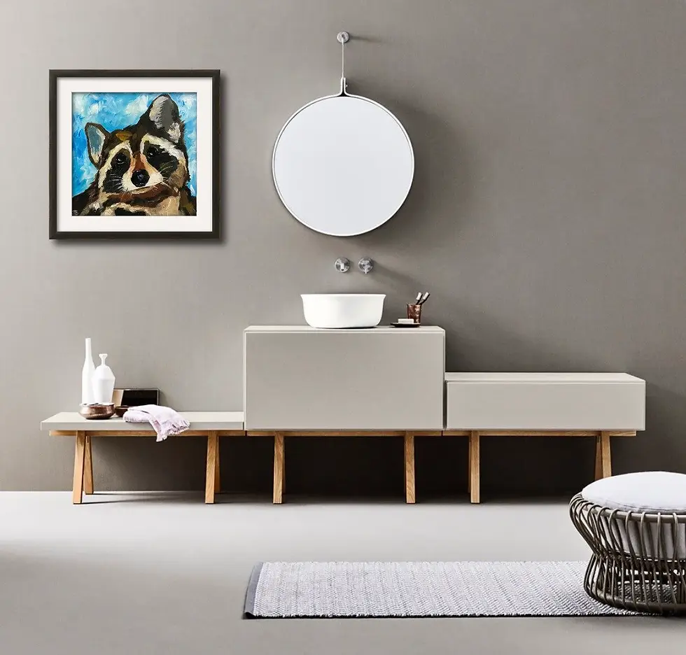 Happy Raccoon original oil painting